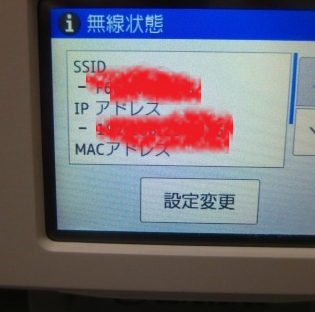 すると、SSID、IPアドレスが表示されますので、設定変更をクリックします。