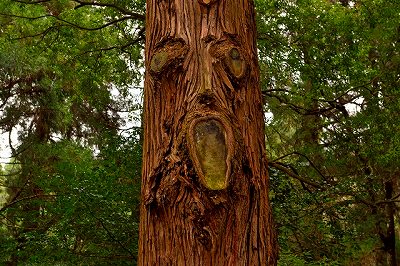 上記の三つの画像、コンセント、立ち木にある模様、素材に出来た三つの穴が顔に見えますよね。