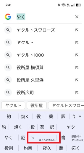 androidでのニアリーイコール「≒」の出し方