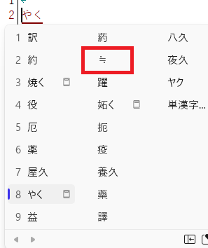 やく→変換、でも出てきます