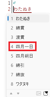 ご覧のように、「四月一日」が出てくるのでクリックすれば入力完了です。