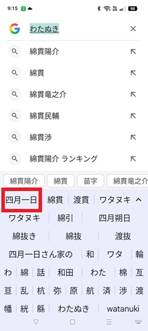 60爺のスマホでは「四月一日」がトップに出てきました。