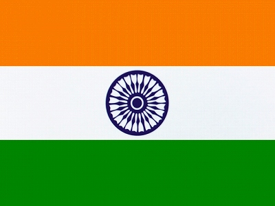 インドの国旗は、上から「サフラン(濃いオレンジ)・白・緑」であり、中央にはアショーカの輪(青)が入っています。
