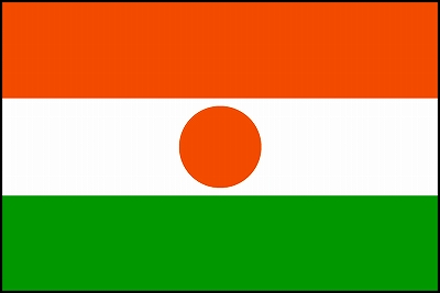 ニジェールの国旗は横三色旗で、上から「オレンジ・白・緑」であり、中心に円(太陽)が入っています。