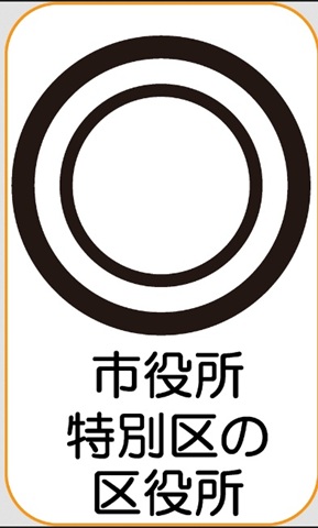 なお、上記に示した通り、この地図記号は、市役所の他に、特別区の区役所(東京23区の区役所)も表します。