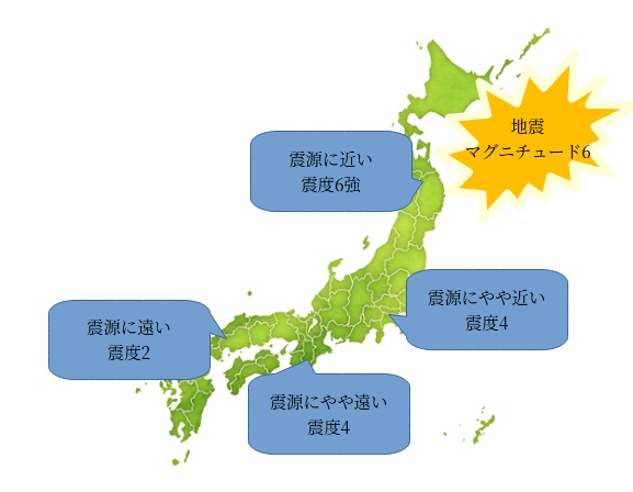 - 震度:その場所での揺れの強さ